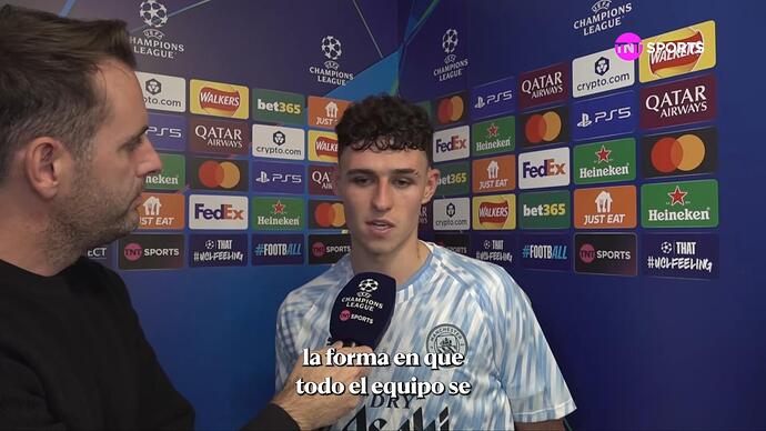 本赛季欧冠联赛阶段第4轮,曼城主场4-1战胜多特蒙德。福登接受了TNT体育的赛后采访。